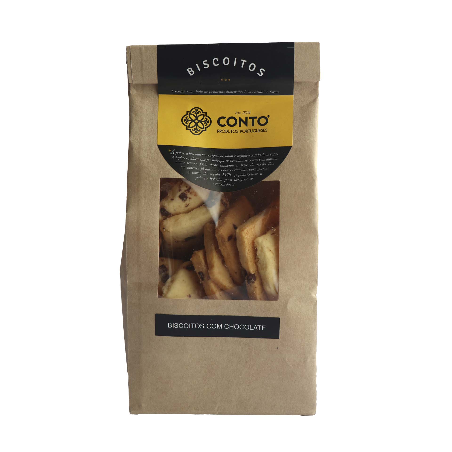 Biscoitos artesanais com chocolate 4,20 € Desconto de %. IVA incluído. Partilhar Comprar Contactar Encomenda mínima de 3 embalagens de biscoitos Conto.Portes de envio para Portugal Continental: €2,85+IVA Biscoitos artesanais produzidos apenas com ingredientes naturais. Sem corantes nem conservantes. Produtor: Conto Ingredientes: Farinha de trigo; Manteiga; Açúcar; Ovos; Chocolate Tamanho: 200 g Manter em lugar fresco e seco. Marca Conto - Produtos Portugueses Tags Biscoitos Características