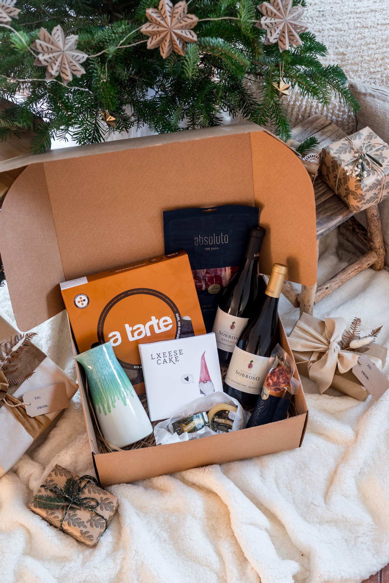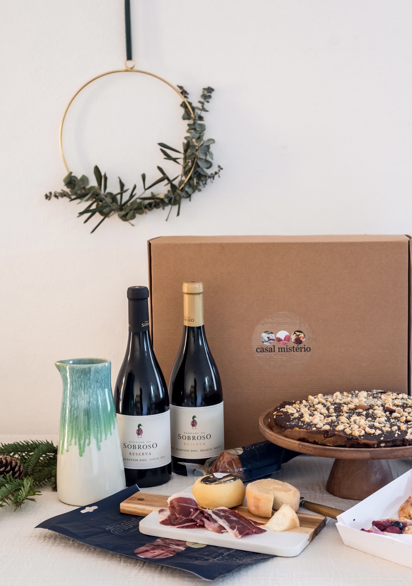 Cabaz de Natal especialmente seleccionado pelo Casal Mistério, para se deliciar em casa com a família ou para oferecer como presente a alguém especial. Encomendas personalizadas disponíveis para empresas.