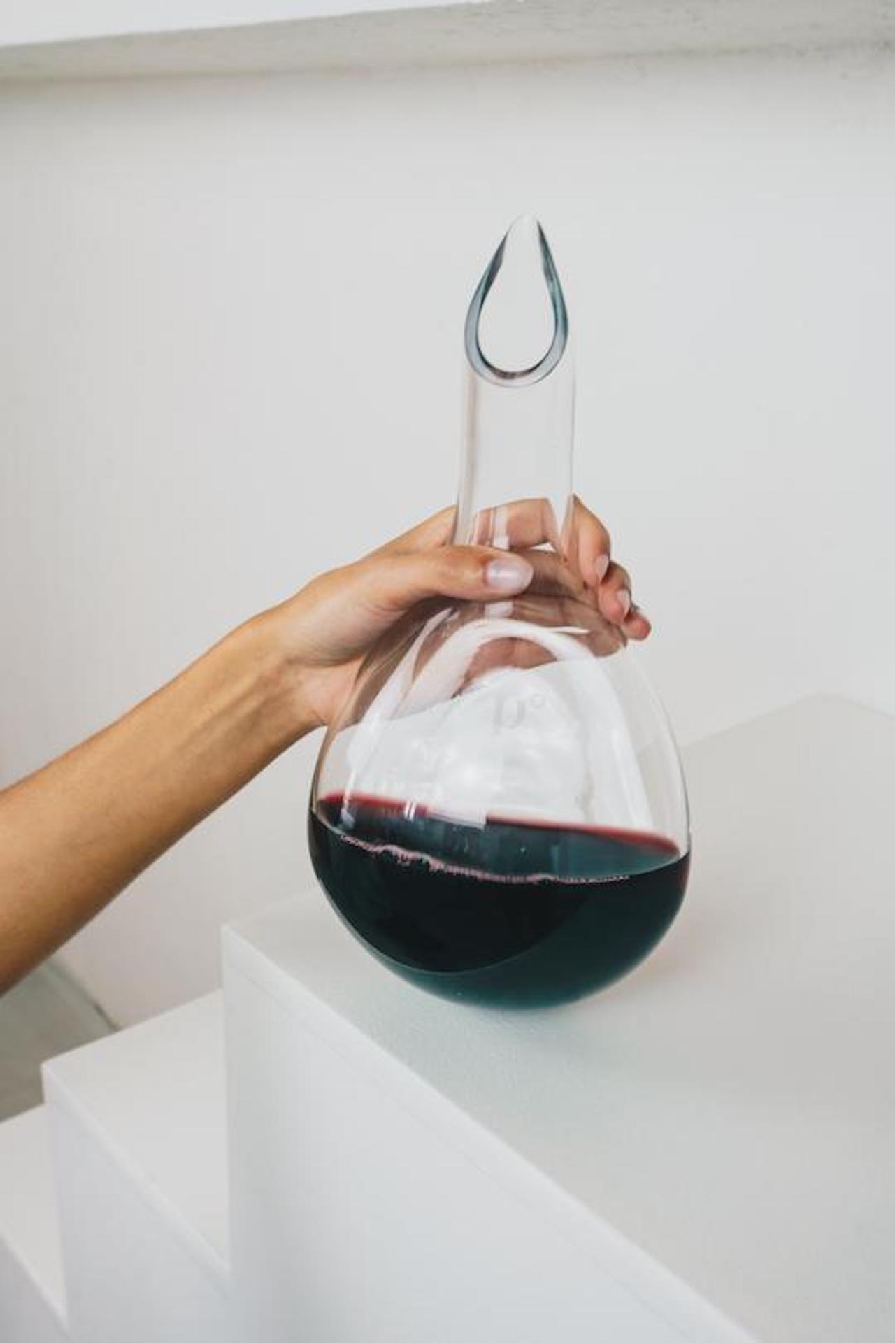Fica maravilhosa na ponta de qualquer mesa de jantar, como se fosse uma gota de vinho a cair no chão. Se preferir, pode comprar um suporte de madeira para a pousar no centro de uma mesa.