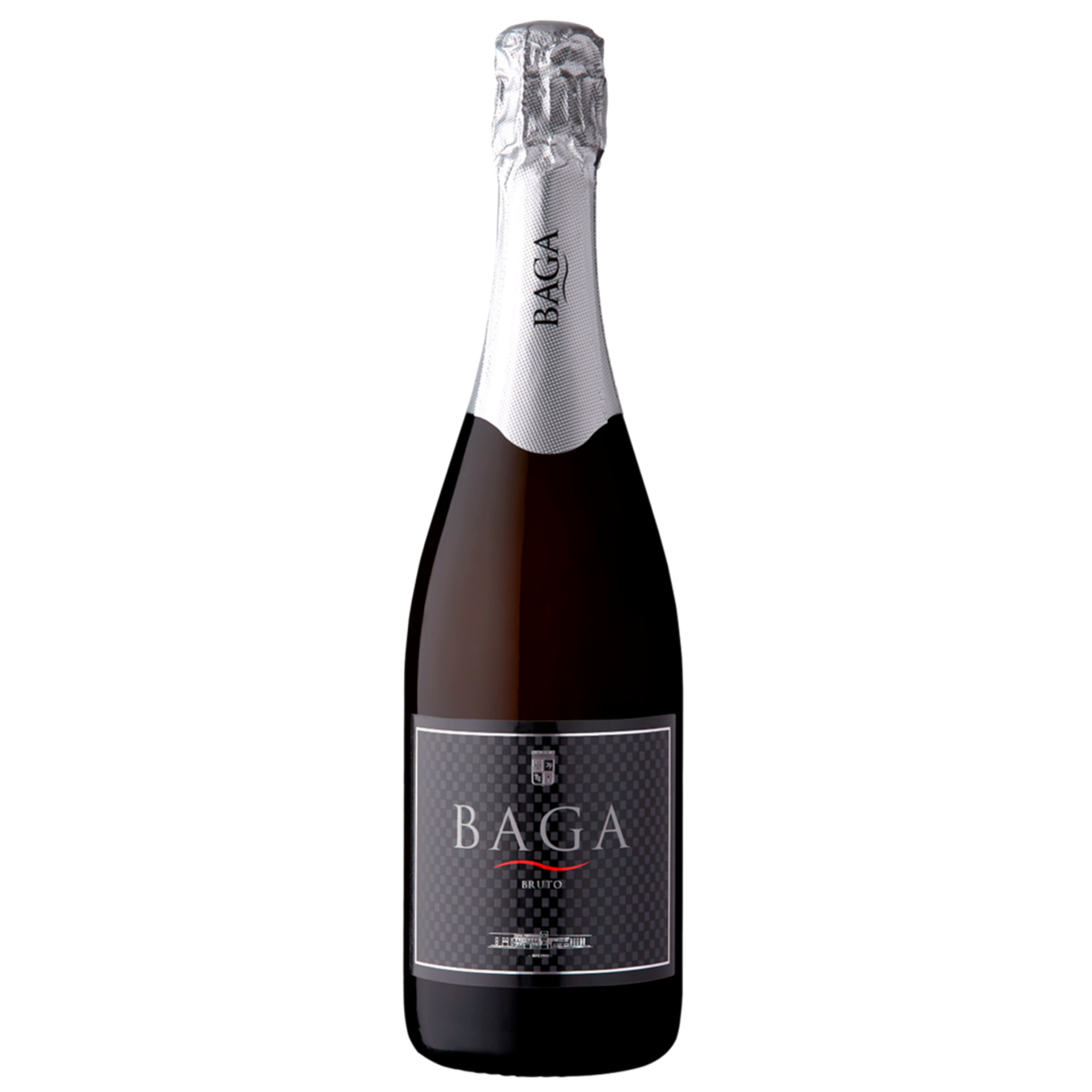 • Garrafa de espumante BAGA com rótulo preto e prata