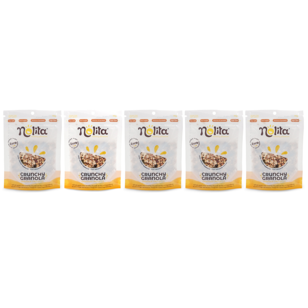 É a nova gama de granolas da Nolita Food, que nós já adorávamos cá em casa. Sem açúcar adicionado, sem ingredientes artificais, sem glúten, vegan, biológicas e com alto nível de fibra, são absolutamente deliciosas. Dividem-se em quatro tipos diferentes de granola, todas produzidas com um adoçante natural com zero calorias e zero açúcar.